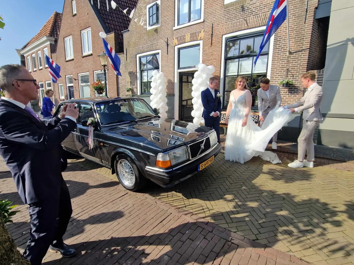 Het was een onvergetelijke mooie zonnige dag en bij een fotogeniek bruidspaar hoort uiteraard een fotogenieke trouwauto.