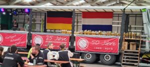 Dat uur pauze is eigenlijk geen straf, rond het parc ferme is het gezellig met enkele kramen waar men eventueel een bratwurst kan nuttigen en waar rijders, navigatoren teamleden en overige crewleden de tijd benutten om bij te kletsen en met andere teams kennis te maken.